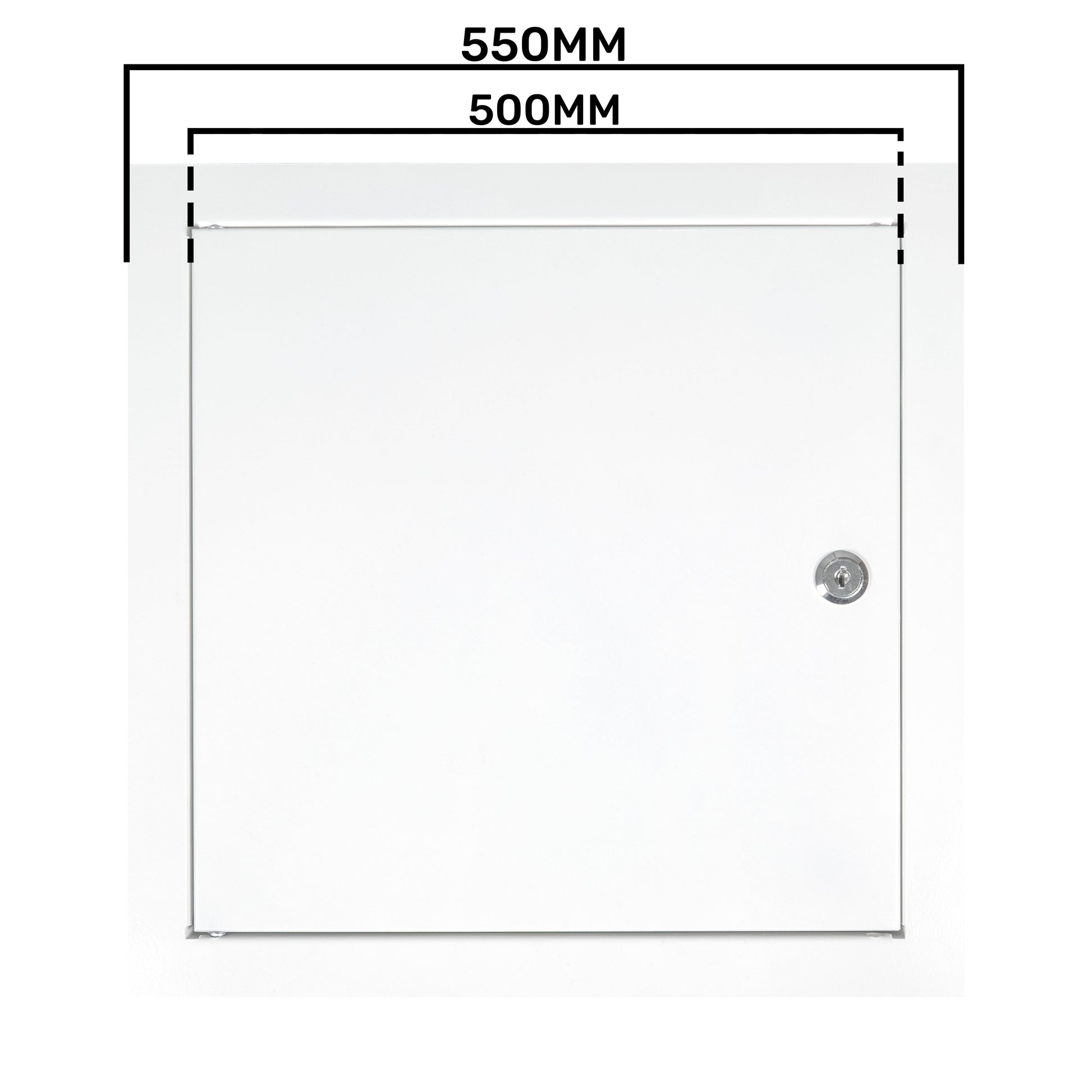 This access panel measures 500mm x 500mm. Other sizes are available on separate listings on our website. If you require an access panel without a lock these are also available on our website.