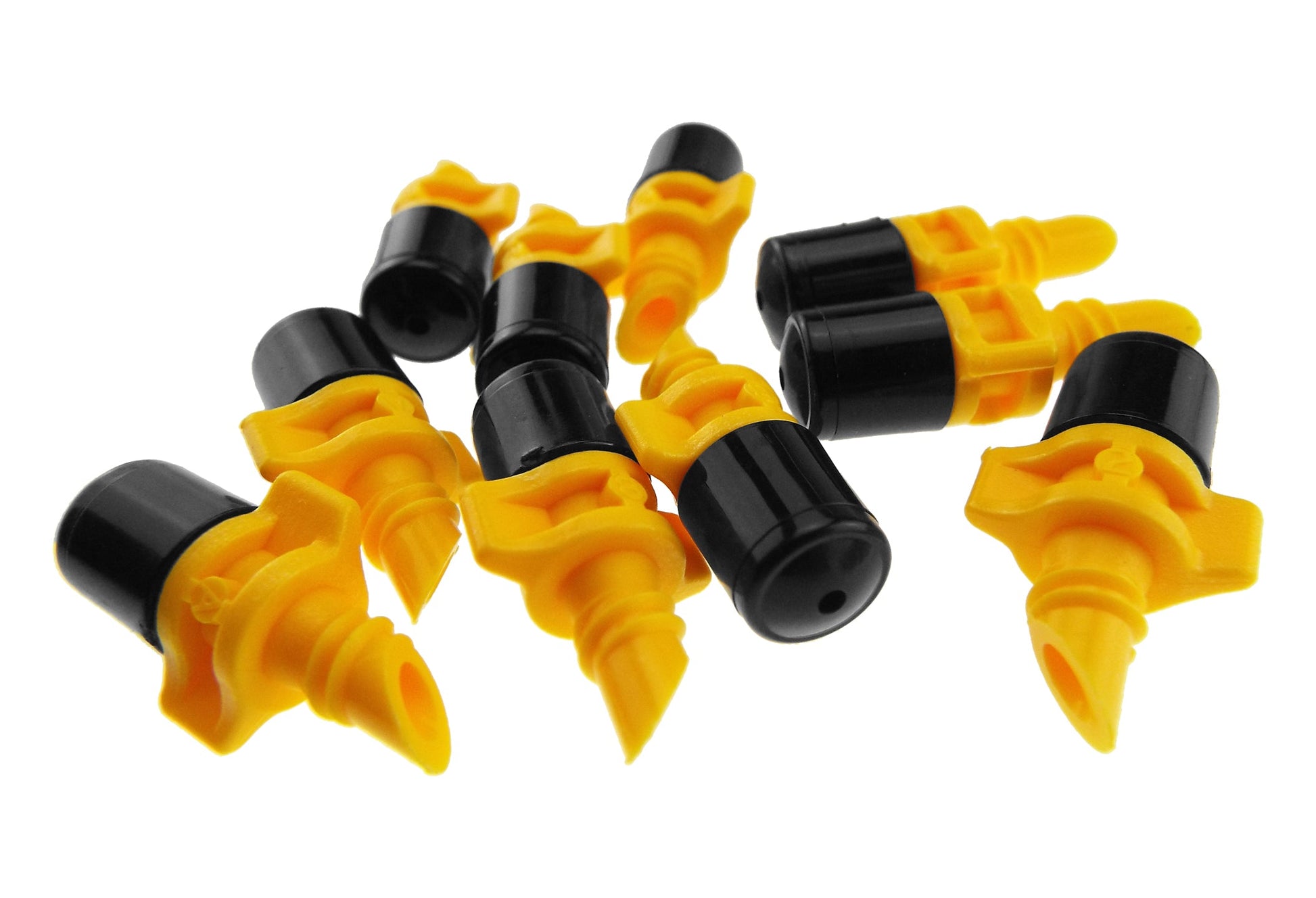 Introducing the Winged Micro Spray Jet Assembled Mist Spray with Black Cap and a Yellow Base. Designed for precision and ease, these two-piece jets offer a mist spray, ideal for areas that need a light spray. Crafted with meticulous attention to detail, they ensure accurate watering patterns for landscape areas, home gardens, nurseries, and horticultural applications.