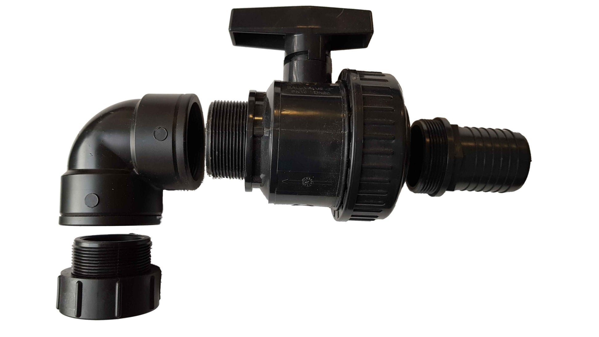 - Kit contains: 1 x IBC Tank Adapter S60X6 Female - 2" BSP Male (IBCS60X6-2BSPM), 1 x PP Elbow Fitting 2" BSPF (ELB2BSPF), 1 x Full Flow Single Union Ball Valve PP 2" BSPF-M (VALVE2BSPM-F-LARGE), 1 x Pond Straight Connector 2" BSPM - 50mm (POND50B2BSPMSTR)
