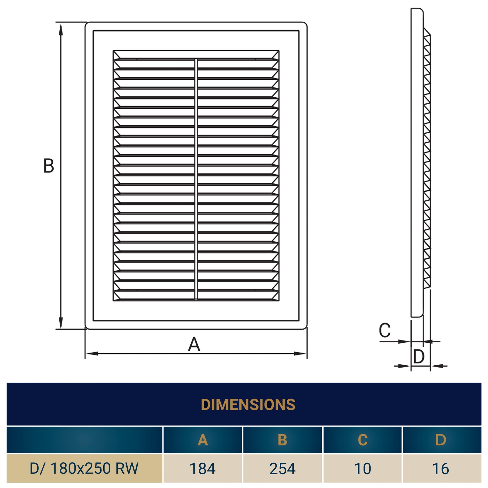 Louvre Vent D/180X250RW Classic 180mm X 250mm with Fly Screen