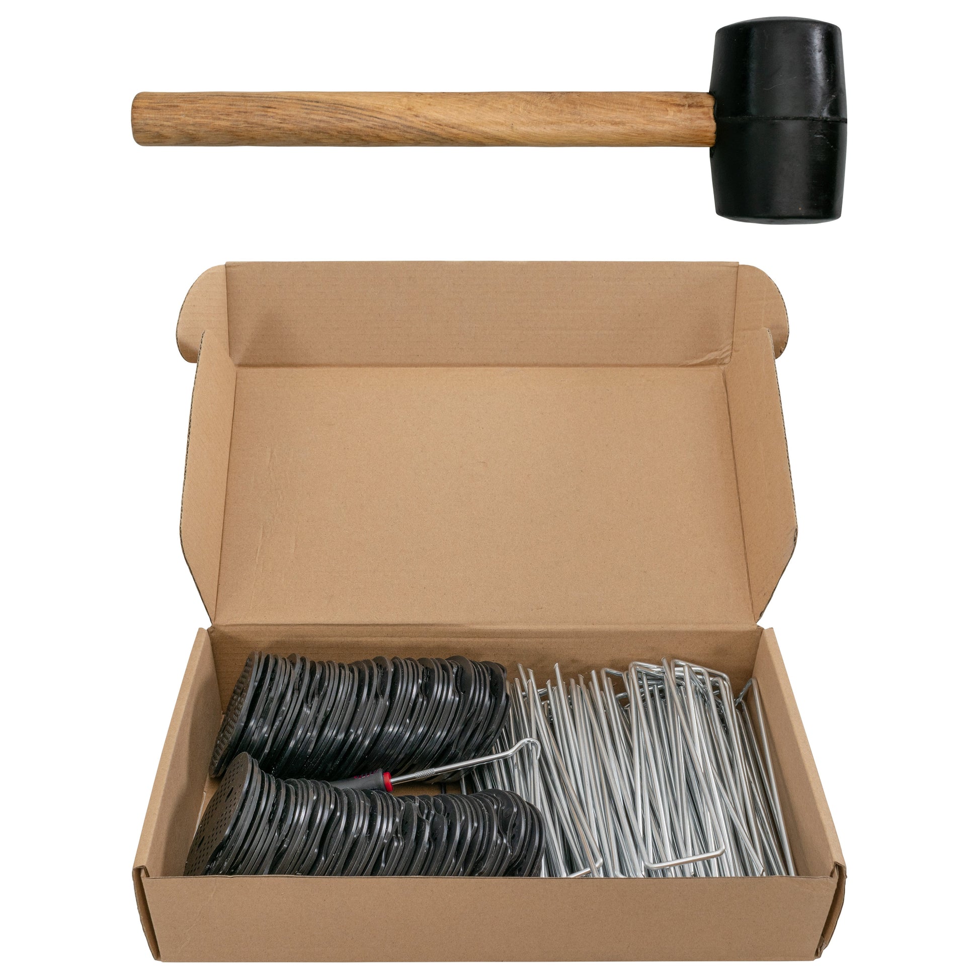 Weed Control Membrane Pegs Buffer Washer Set Red with Rubber Mallet