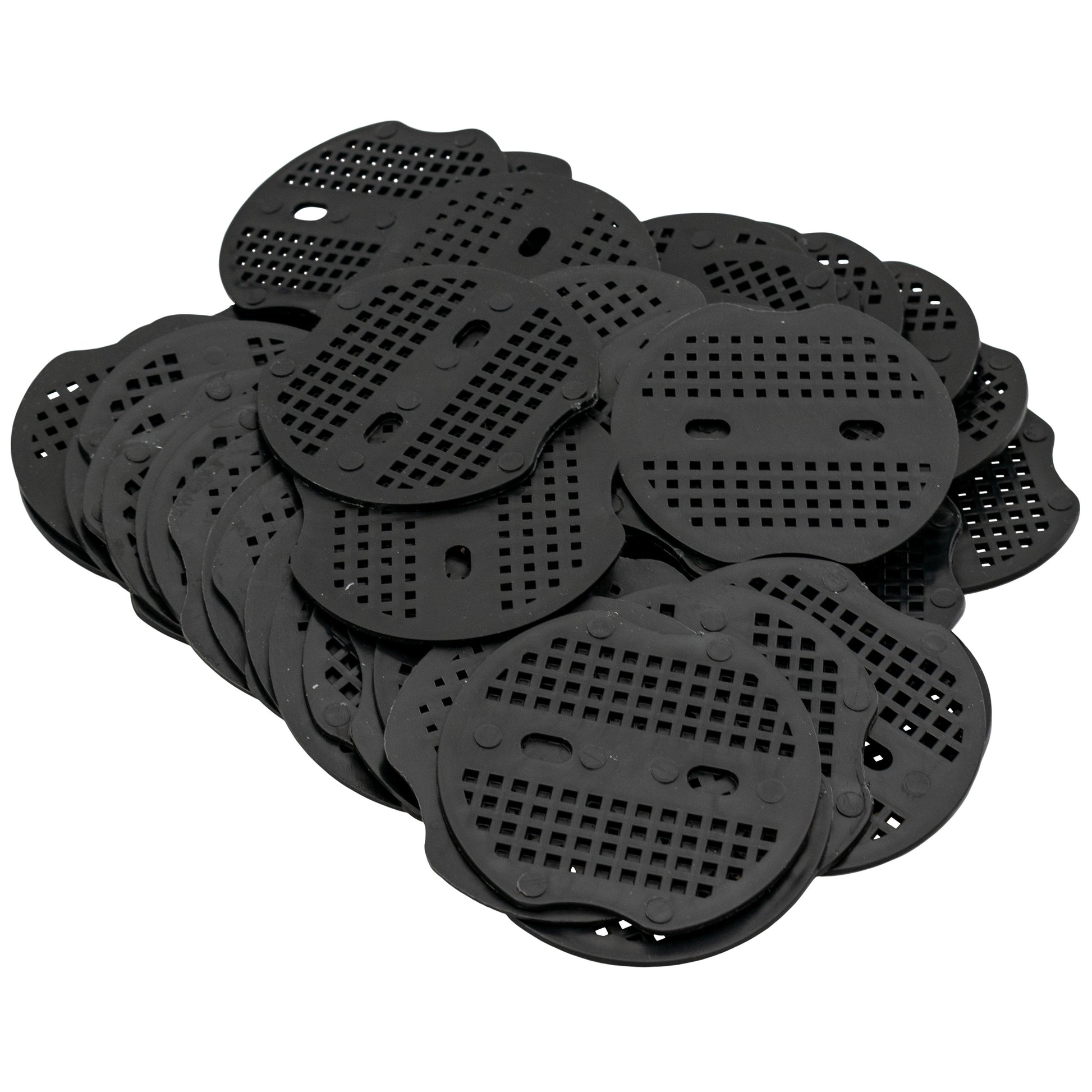 The Weed Control Membrane Pegs Buffer Washer, measuring 6"/150mm, are essential for securing landscaping fabrics effectively and reliably. This pack includes robust metal hold down pegs that ensure the fabric stays in place even in challenging weather conditions. The inclusion of black buffer washer plates significantly enhances the stability of the matting membrane, reducing the likelihood of tears and damage. These washer plates provide a solid, flat base for the pegs, ensuring a more secure fit and extending the lifespan of the fabric.