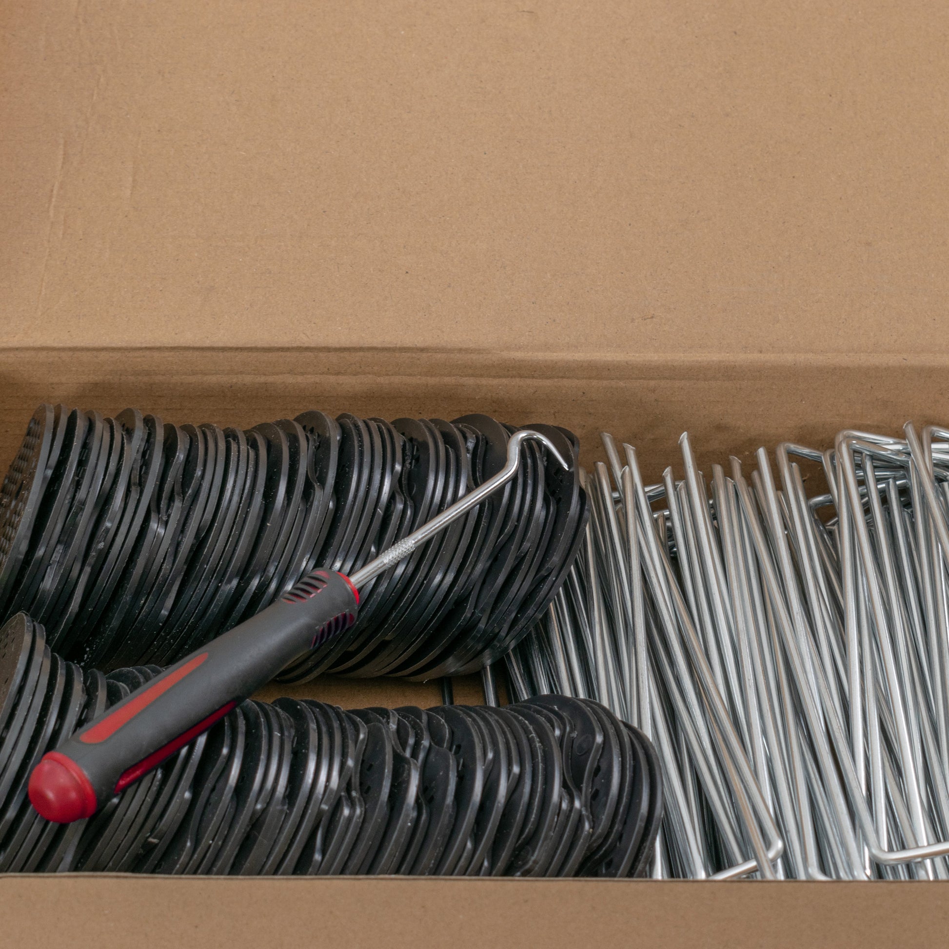 Additionally, the pack comes with a hook tool designed for easy removal of the pegs. This tool makes the process of relocating or adjusting the fabric hassle-free, allowing for quick and efficient changes as needed. The ease of peg removal ensures that maintenance tasks or reconfigurations of your landscape design can be performed without difficulty, saving time and effort.